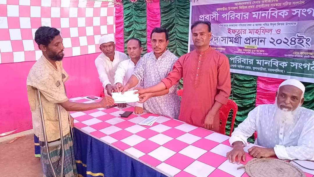 স্টাফ রিপোর্টার(ফুলবাড়িয়া): সমন্বয়ে গঠিত প্রবাসী পরিবার মানবিক সংগঠনের আয়োজনে আগামী পবিত্র ঈদুল ফিতর উপলক্ষে ঈদ সামগ্রী নগদ অর্থ প্রদান করা হয়েছে।
