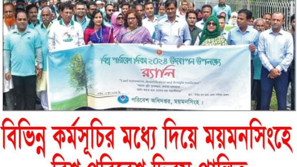স্টাফ রিপোর্টার(ময়মনসিংহ): ময়মনসিংহে বিভিন্ন কর্মসূচির মধ্য দিয়ে বিশ্ব পরিবেশ দিবস ২০২৪ পালিত হয়েছে। এবছর বিশ্ব পরিবেশ দিবসের প্রতিপাদ্য হলো “করবো ভূমি পুনরুদ্ধার, রূখবো মরুময়তা অর্জন করতে হবে মোদের খরা সহনশীলতা।